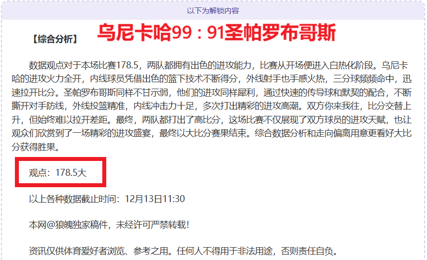 解锁内容包括:综合大数据分析+分解赛事走向+比赛建议+作者观点数据