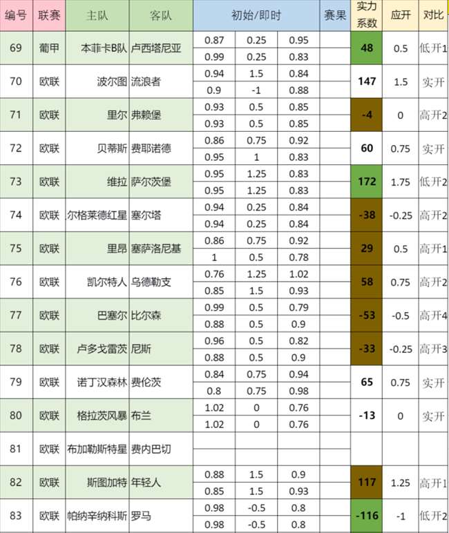 【数据栏目简介】本人独家研制了必发冷热系数、北单偏离系数和实力系数,对于捕捉冷门比赛具有较大帮助,博士致力于提供有价值的比赛数据,以提高大家分析比赛的效率。冷热系数是反映比赛冷热程度的指标,偏离系数是反映积构意见分歧的指标,实力系数是反应球队定位的指标,不同数据使用方法不同。对于不熟悉数据使用方法的朋友,请查看下面多篇教程。但足球毕竟是圆的,比赛结果是球员实打实踢出来的,并不是靠这些数据计算出来的比赛结果,各种数据只是辅助我们预测比赛结果而已,我们更倡导授之以渔,希望通过我们的数据提高您分析预测比赛的准确性。